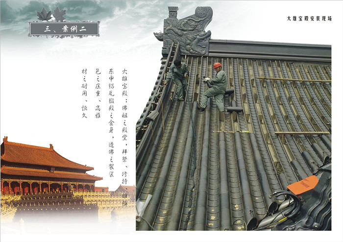 銅瓦做房屋屋面使用范圍主要針對(duì)寺廟,廟宇,寺院.牌坊地處偏遠(yuǎn)區(qū)域;