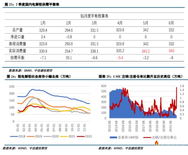 消費(fèi)則表現(xiàn)出明顯韌性,在華東地區(qū)解封之前,市場(chǎng)將持續(xù)交易消費(fèi)轉(zhuǎn)好預(yù)期。而庫(kù)存的持續(xù)去化,使得消費(fèi)改善無(wú)法證偽,短期滬鋁仍有反彈動(dòng)能。LME庫(kù)存的持續(xù)去化,以及注銷/注冊(cè)倉(cāng)單比的提升,使得倫鋁存在潛在逼倉(cāng)風(fēng)險(xiǎn)。短期操作上建議逢低做多為主。