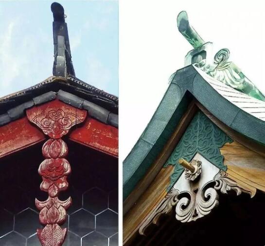 懸魚是位于懸山或者歇山建筑兩端的博風(fēng)板下,垂于正脊。作為中國古代建筑的一種元素,最早出現(xiàn)在唐代,但從我國現(xiàn)存的古建筑中,保留下來的唐代實(shí)物很少,所能見到最早也是宋代所建。