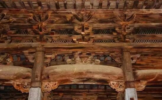 在中國北方地區(qū)的木結(jié)構(gòu)建筑中,多做平直的梁,而南方的做法則將梁稍加彎曲,形如月亮,故稱之為月梁。加之南方天氣炎熱,殿堂基本上都做“徹上明造”而不做天棚,這樣一來月梁的形象暴露于外,當(dāng)人們進(jìn)入殿堂時(shí),全部梁架構(gòu)造一目了然。