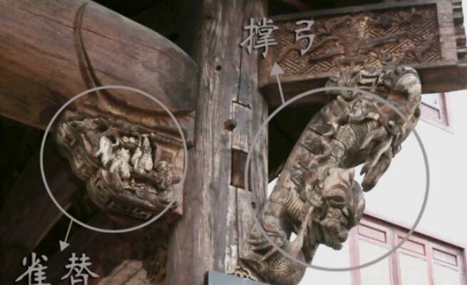 建筑大師梁思成先生在他的《中國建筑圖集》提到一種“似是而非的雀替”,就是中國南方,特別是江浙地區(qū)和皖南一帶普遍存在的“撐弓”。