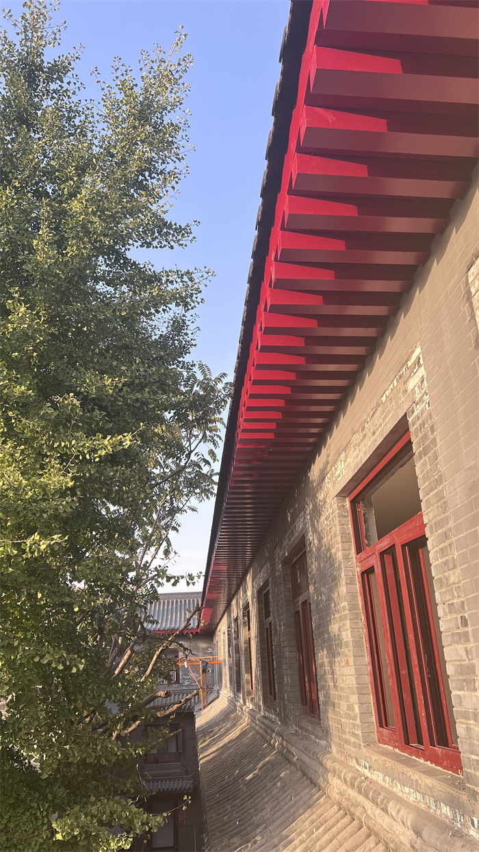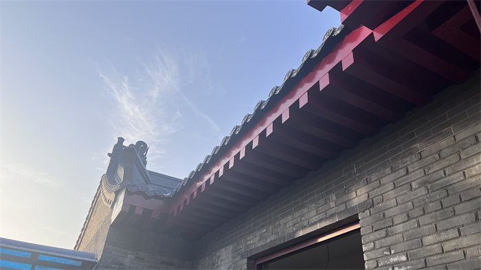 西安臥龍寺屋面鋁鎂錳合金瓦全面施工完畢,選用3號(hào)分體瓦,1.2mm厚,面積約780平方。整體風(fēng)格:明清風(fēng)格;屋檐下紅色方椽也選用鋁鎂錳合金材質(zhì);搭配明清風(fēng)格金屬瓦;整體屋面效果,質(zhì)感亮麗,清新脫俗,跟臥龍寺的氣質(zhì)完全匹配。