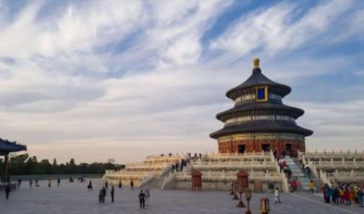 天壇是祭祀用的建筑,其中祈年殿的臺基高6米,直徑91米,整個臺基共有三層漢白玉須彌座,分別有著不同的主題,最下面是云、第二層是鳳、第三層是龍,整個主題呈現(xiàn)出“龍鳳飛翔于祥云之上”的意境。