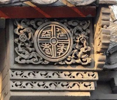 傳統(tǒng)磚雕戧檐大體分為,淺浮雕、深浮雕兩大類。淺浮雕又稱為“剔地兒雕”。剔地兒的深淺與層次是根據(jù)具體圖案、造型所決定的。剔地兒淺的稱為“平雕或線雕、或陰陽雕”,表現(xiàn)形態(tài)多以花草、枝藤蔓葉、博古文字等紋樣為主。做法是,在一個平面上鑿出各種輪廓,要求線條成V陰紋形或凸棱形,精準勾勒表現(xiàn)主體即可。相反,剔地兒深的稱為“深浮雕”,是以多個層次形態(tài)表現(xiàn)主題。做法是,在一個平面上鑿出多層輪廓圖案,要求凹凸層次分明、主次明確、繁簡有序、虛實結合,有極強的立體感。有時,兩種雕刻技法配合使用,塑造出來的藝術效果更具觀賞性。