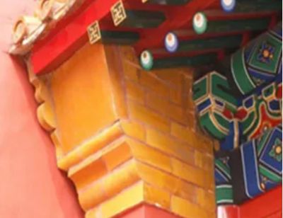 從使用材料上看,主要分為琉璃戧檐和青磚戧檐兩大類,呈現(xiàn)的基本形態(tài)為方形、扁方型或長方形。琉璃戧檐一般為定型燒制,有黃、綠或其它顏色,規(guī)格尺寸和顏色與建筑等級規(guī)制相關。一般規(guī)制是,黃琉璃戧檐等級高于綠琉璃戧檐,綠琉璃戧檐等級高于青磚戧檐。青磚戧檐一般用方磚砍制而成,有尺七、尺四、尺二戧檐等。一般,規(guī)格尺寸大的方磚戧檐等級要高于尺寸小的方磚戧檐,當青磚戧檐需要增大尺寸時,可以豎向拼接而成。