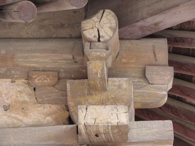 除了這些較顯著的手法外,中國古代傳統(tǒng)建筑中還使用了大量的其他技術(shù)措施,這些措施是古建筑抗震的關(guān)鍵。比如榫卯的使用:榫卯是極為精巧的發(fā)明,我們的祖先早在7000年前就開始使用,這種不用釘子的構(gòu)件連接方式,使得中國傳統(tǒng)的木結(jié)構(gòu)成為超越了當(dāng)代建筑排架、框架或者剛架的特殊柔性結(jié)構(gòu)體,不但可以承受較大的荷載,而且允許產(chǎn)生一定的變形,在地震荷載下通過變形吸收一定的地震能量,減小結(jié)構(gòu)的地震響應(yīng)。