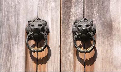 “用木為格,以湘妃竹橫斜釘之,或四或二,不可用六。兩旁用板為春聯(lián),必隨意取唐聯(lián)佳者刻于上。若用石梱,必須板扉。石用方厚渾樸,庶不涉俗。門環(huán)得古青綠蝴蝶獸面,或天雞饕餮之屬,釘于上為佳,不則用紫銅或精鐵,如舊式鑄成亦可,黃白銅俱不可用也。漆惟朱、紫、黑三色,余不可用”。