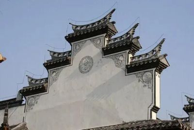 在較大的民居建筑中,因有前后廳,進(jìn)深較大,馬頭墻的疊數(shù)可多至五疊,俗稱為“五岳朝天”。高大雄偉、氣宇軒昂,充分顯示出房主人的財力或地位。