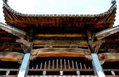 首先,木構(gòu)架是中國古代建筑的首要特征:即在房屋的面闊和進深基礎(chǔ)上,設(shè)置石礎(chǔ),而后在石礎(chǔ)上立柱,再于柱上架梁,即“四梁八柱”梁柱間連枋,梁枋上又承架、檁、椽,二者相互支撐并互為依托,以木構(gòu)架來承托屋頂或樓層重量,繼而再通過梁架傳遞至木柱,木柱再傳導(dǎo)至地面,加之榫卯結(jié)構(gòu)和斗拱技術(shù)的運用,使這種木構(gòu)建筑具有了抗擊外力的功能,從而成為一種結(jié)構(gòu)復(fù)雜、工藝嚴格、結(jié)實、牢固,“房倒屋不塌”的建筑形式。