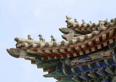 故宮的角樓,既是這種屋頂曲面形制的綜合,又有著極為豐富的變化。它的屋頂組合令其在不同層面上形成了幾十個大小不一、錯落有致的屋面。它的屋面分3層,下層是重檐歇山的下層腰檐,隨著平面出角和入角的變化,將尾面分成大小20塊瓦面。中層屋檐是重檐歇山的上層,由不同坡度的28塊屋面組成。頂層是由2條正脊、8條垂脊、12塊屋面及寶頂?shù)鬃M成。這些屋面形成了一種屋頂曲線與屋檐起翹的交響。