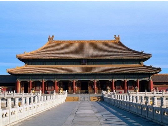 等級(jí)最高的是廡殿頂,特點(diǎn)是前后左右共四個(gè)坡面,交出五個(gè)脊,又稱五脊殿或吳