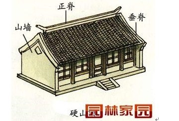 鋁瓦硬山頂(亦是前后兩個(gè)坡面但左右兩端并不挑出山墻之外)。