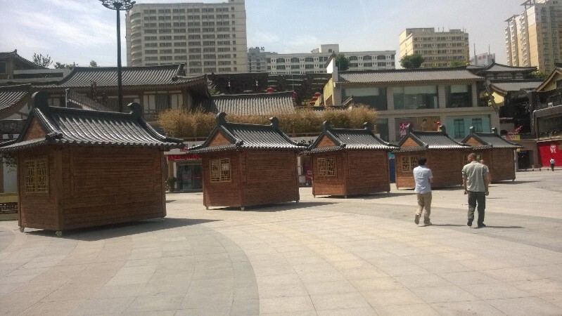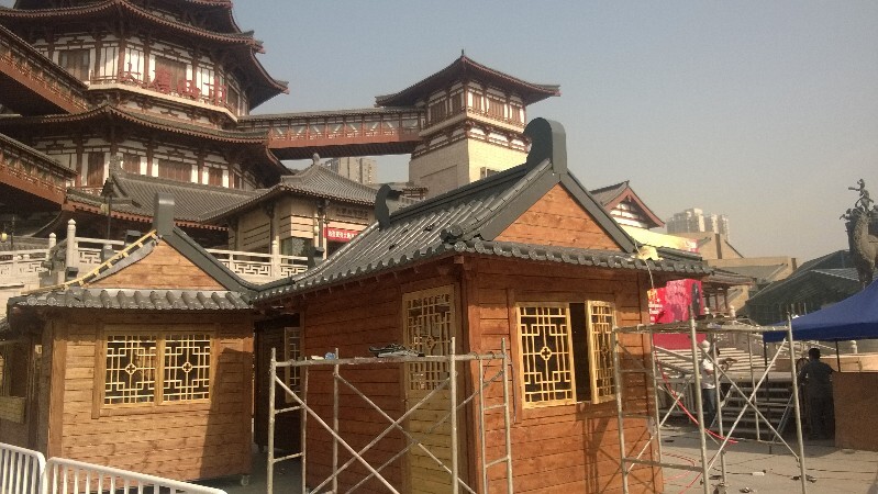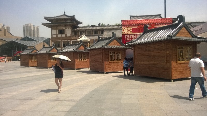 2014年5月20日我公司完成了東西部貿(mào)洽會大唐西市分會場仿古售賣亭的鋁瓦工程!
